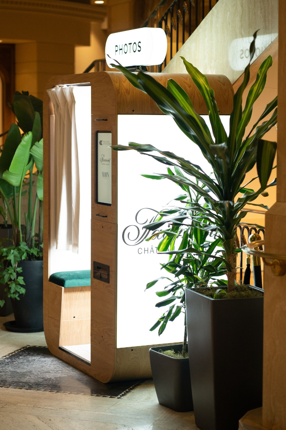 A permanent install is a fixed, enclosed photo booth placed in a high-traffic location, like a hotel lobby, a mall, an entertainment venue, that operates as its own ongoing revenue stream.